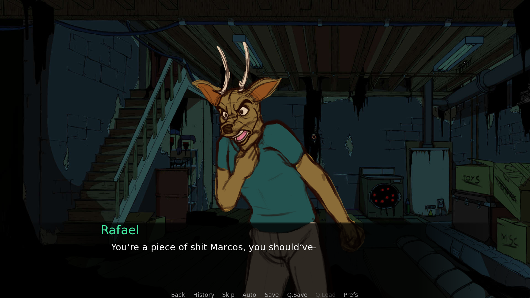 Marcos wakes up in an abandoned basement with no memory of how he got there, only to find out he’s stuck there with someone from his past who constantly sends him mixed messages. The main goal is to escape.